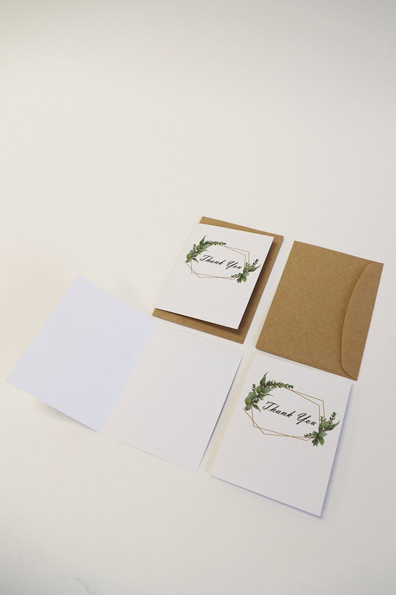 Say 'thank you' with these unique and simple paper cards with a touch of foliage. Come with manilla envelopes for a minimal look.