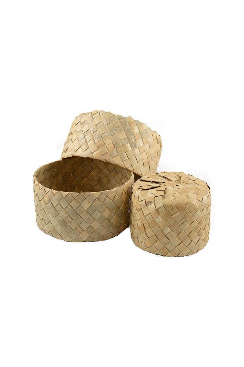 Natural Woven Round Basket w Lid