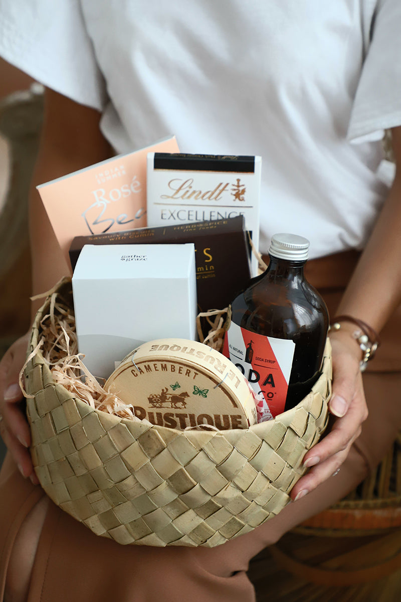 Natural Woven Round Basket w Lid comes in 2 sizes. It can be styled a hamper or a storage basket.